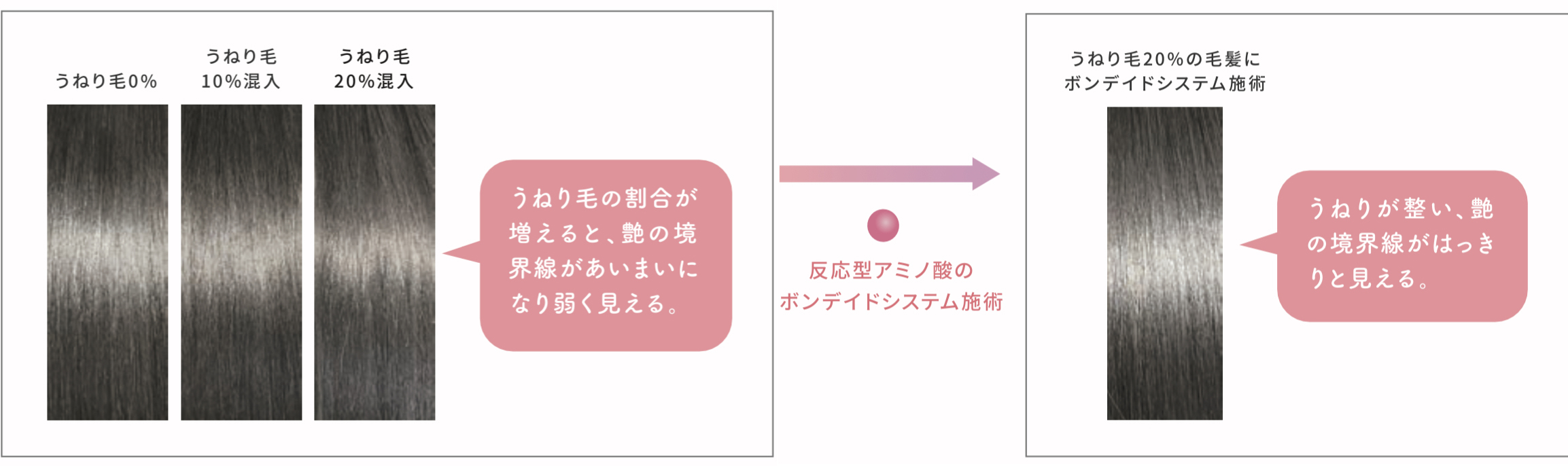 - ②反応型アミノ酸の定着で日々のダメージに負けない髪に