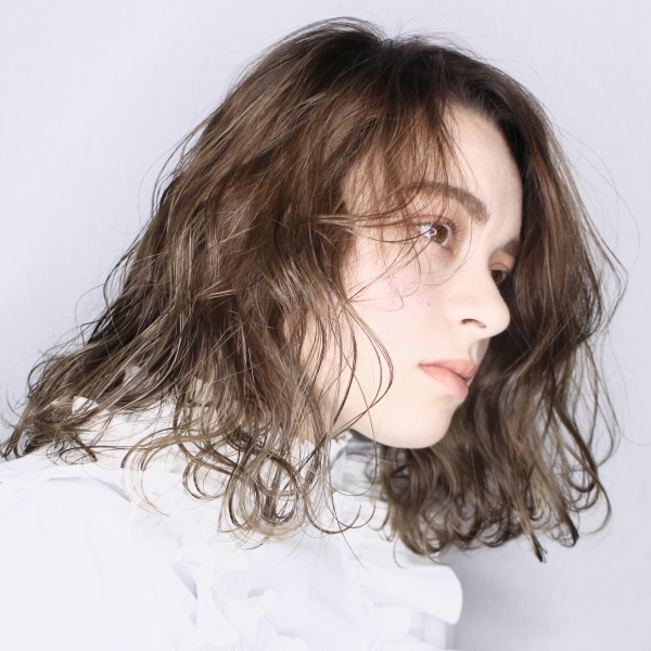 パーマをかけて立体感とほどけるような質感が叶います。ヘアカラーはシアーベージュ 肌に馴染み 髪にツヤ感が生まれます。オイルを全体に揉み込むだけでスタイリングがキマり、一つに束ねるだけでもラフなアレンジができるストレスフリーなスタイルです。
