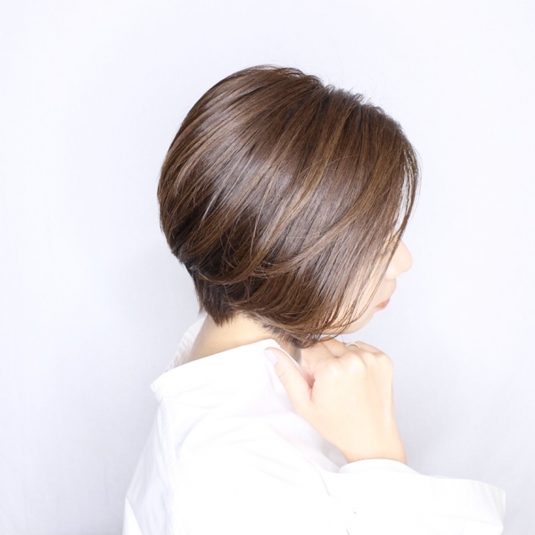 シンプルなグラデーションボブに陰影をつけるくらいのナチュラルなハイライトを入れ、