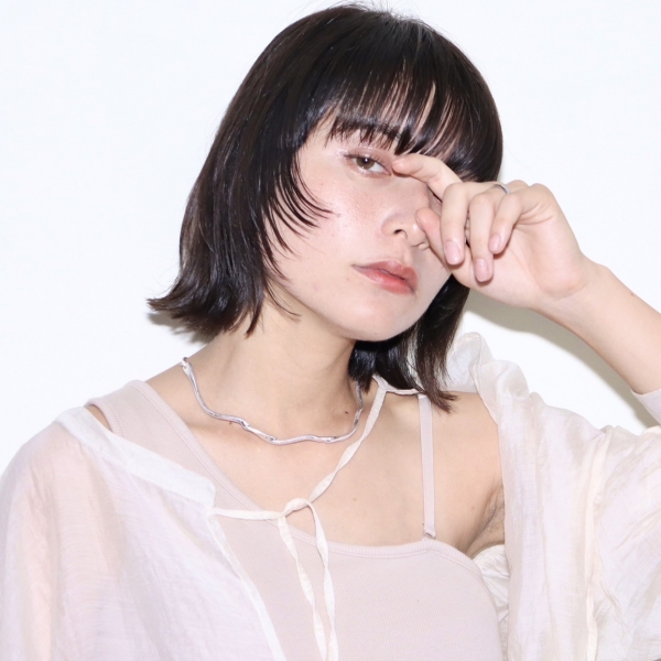 目力を感じるワイドバングと顔まわりのレイヤーがポイント。